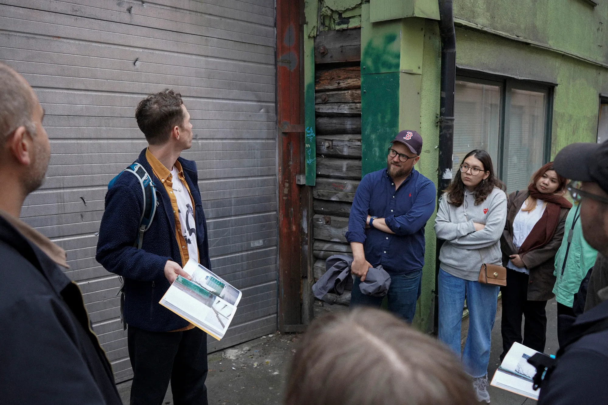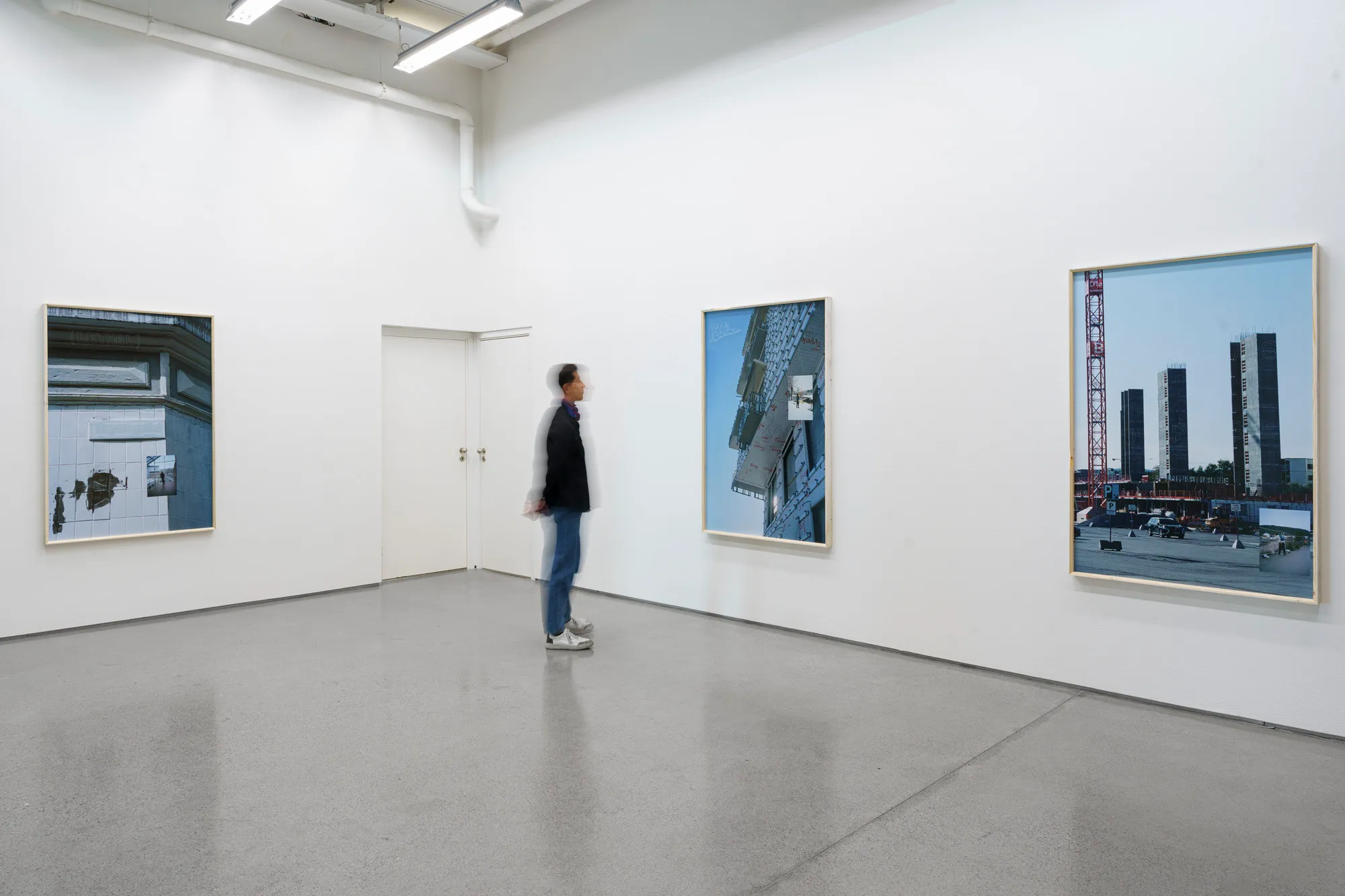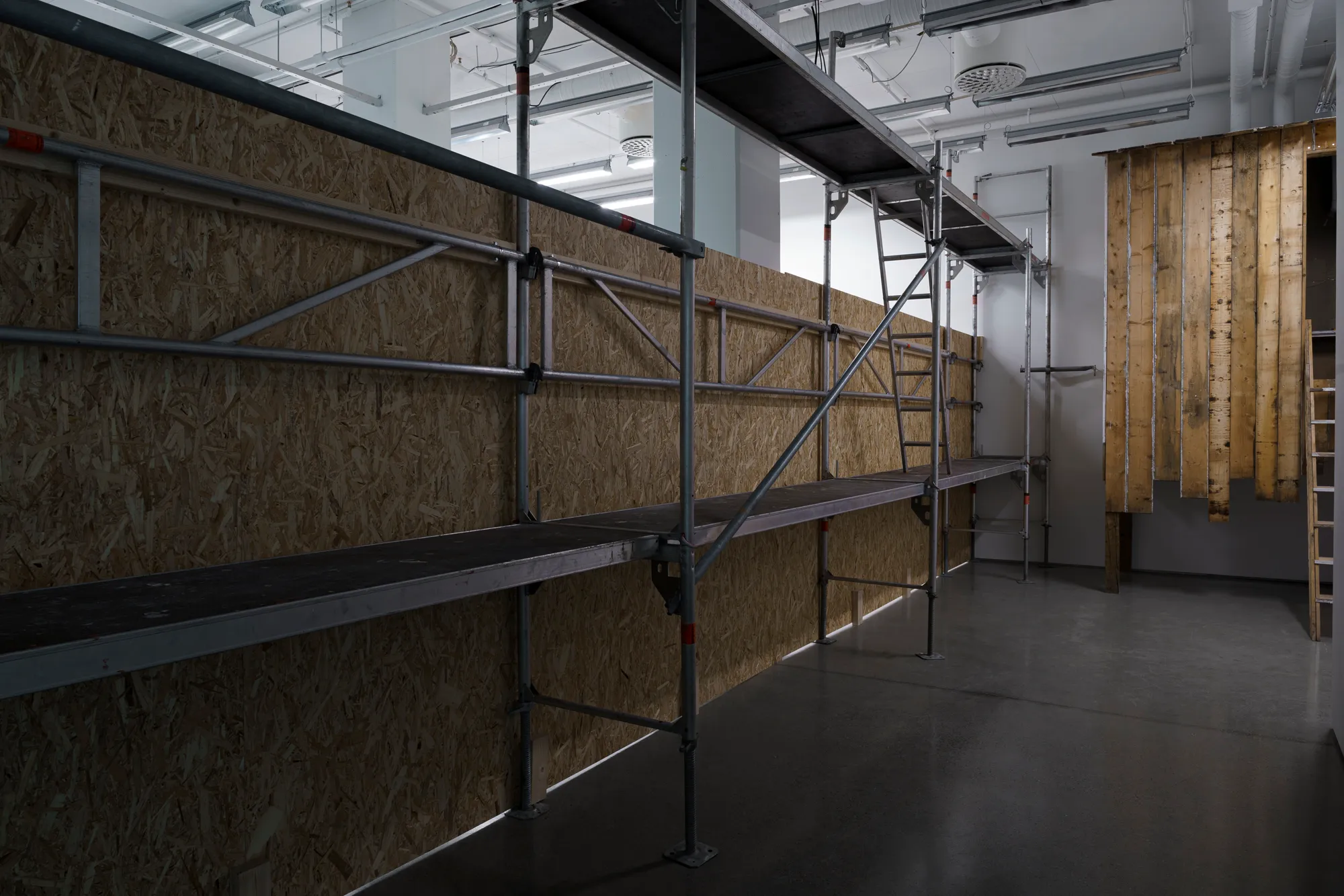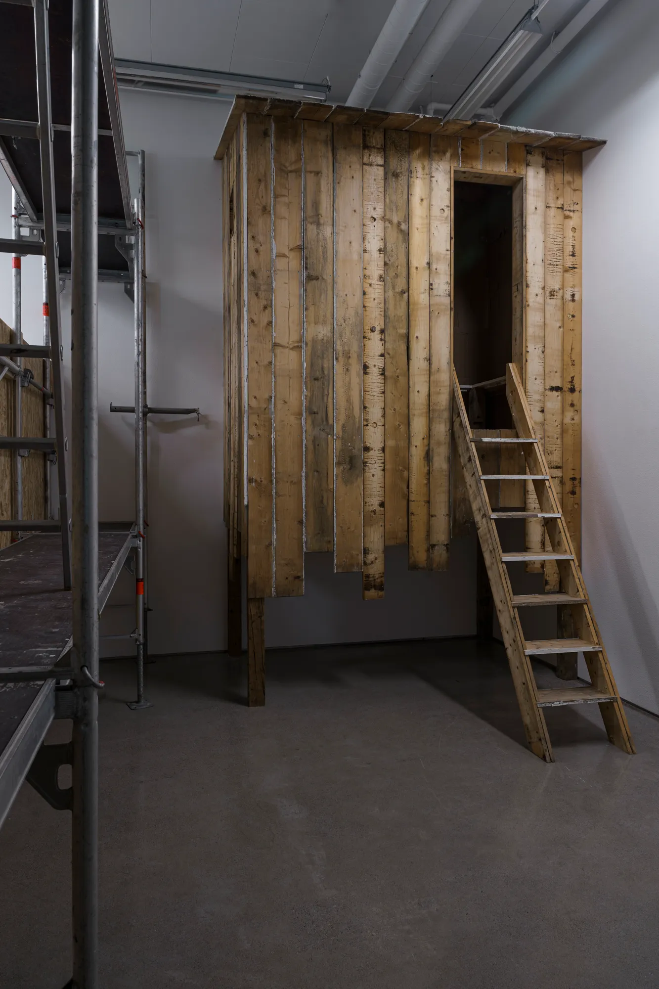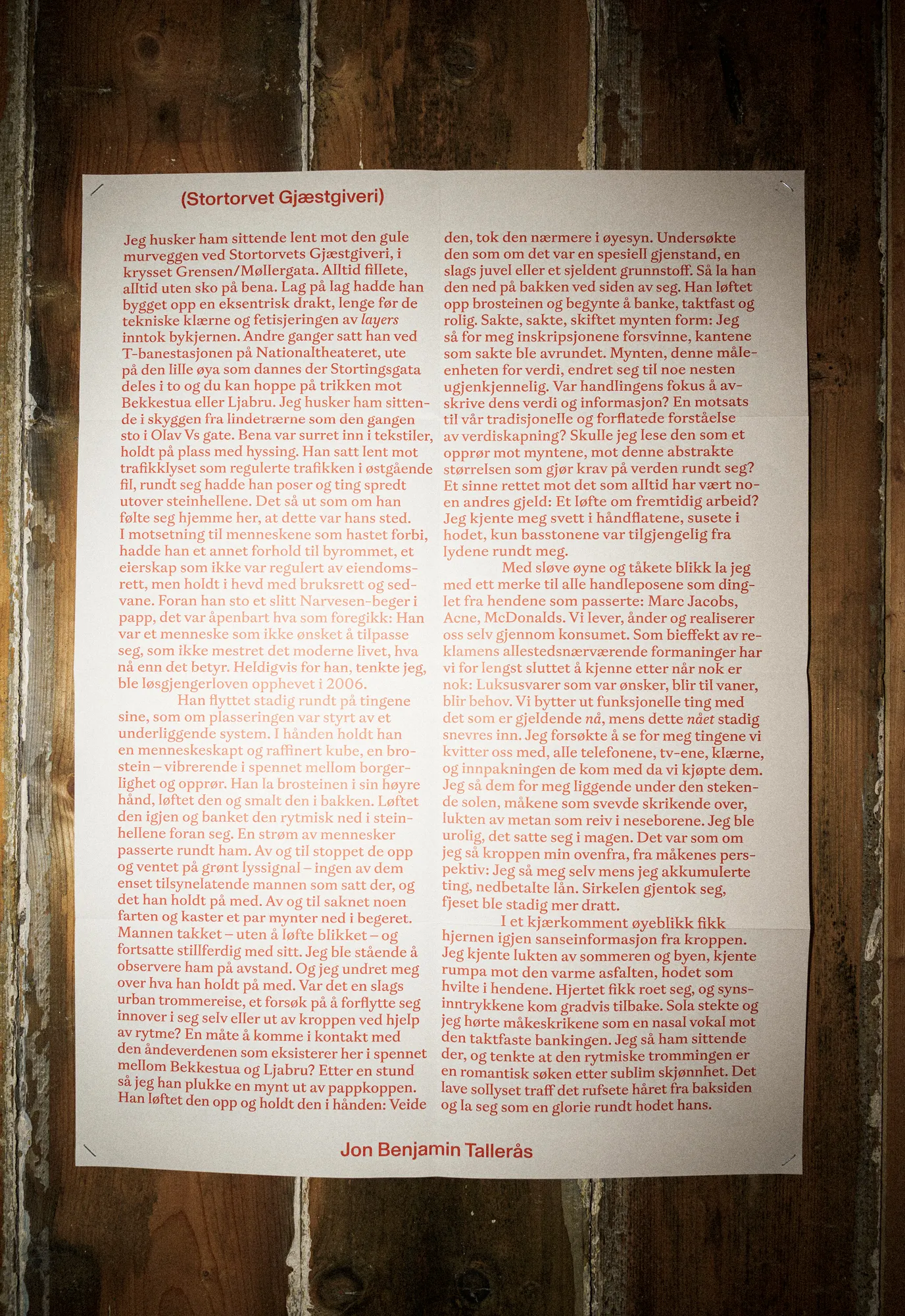 Tallerås has long been concerned with the city’s forgotten corners, waste grounds and unpoliced alleyways. For the past decade he has worked in a studio in a former metal casting factory at Rolf Hofmos gate 18, next to the T-bane line at Ensjø, an address that he has shared both with other artists and with a variety of informal operations, including an illegal poker game and a biker gang. Now that building, along with the rest of Ensjø, has been razed to the ground and rebuilt into Hovinbyen, a new kind of place that is subject to a more aggressive regime of control. The book Footnotes distills the artist’s archive of many thousands of analogue photographs into a poetic visual essay, an elegy not only for Ensjø, but for the idea of the city as a human landscape where culture might exist independently from capital. For the exhibition To Reclaim Lost Futures Tallerås has built a large-scale structure from scaffolding and found materials that serves both as a reading room for Footnotes and as the projection screen for a new video. In addition, Tallerås will present three new photographic works, a print edition and a found coin that has been worked on by the itinerant Oslo character locally known as kroneknuser’n [the crown crusher].